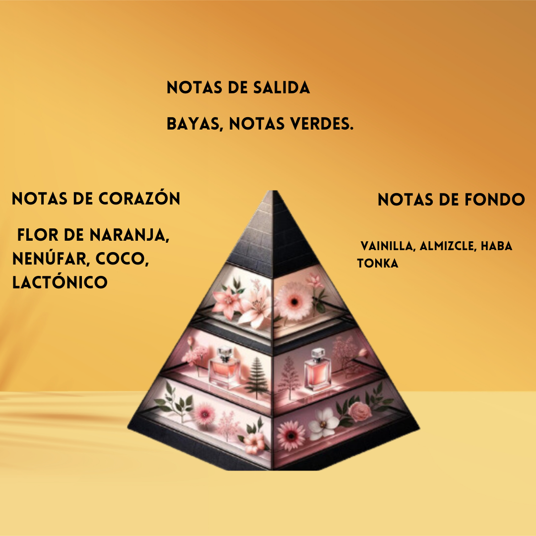 🌸 Florales & exotisches Herz: Orangenblüte, Seerose, Kokos und ein lactonischer Akkord verleihen tropische Eleganz und Cremigkeit.