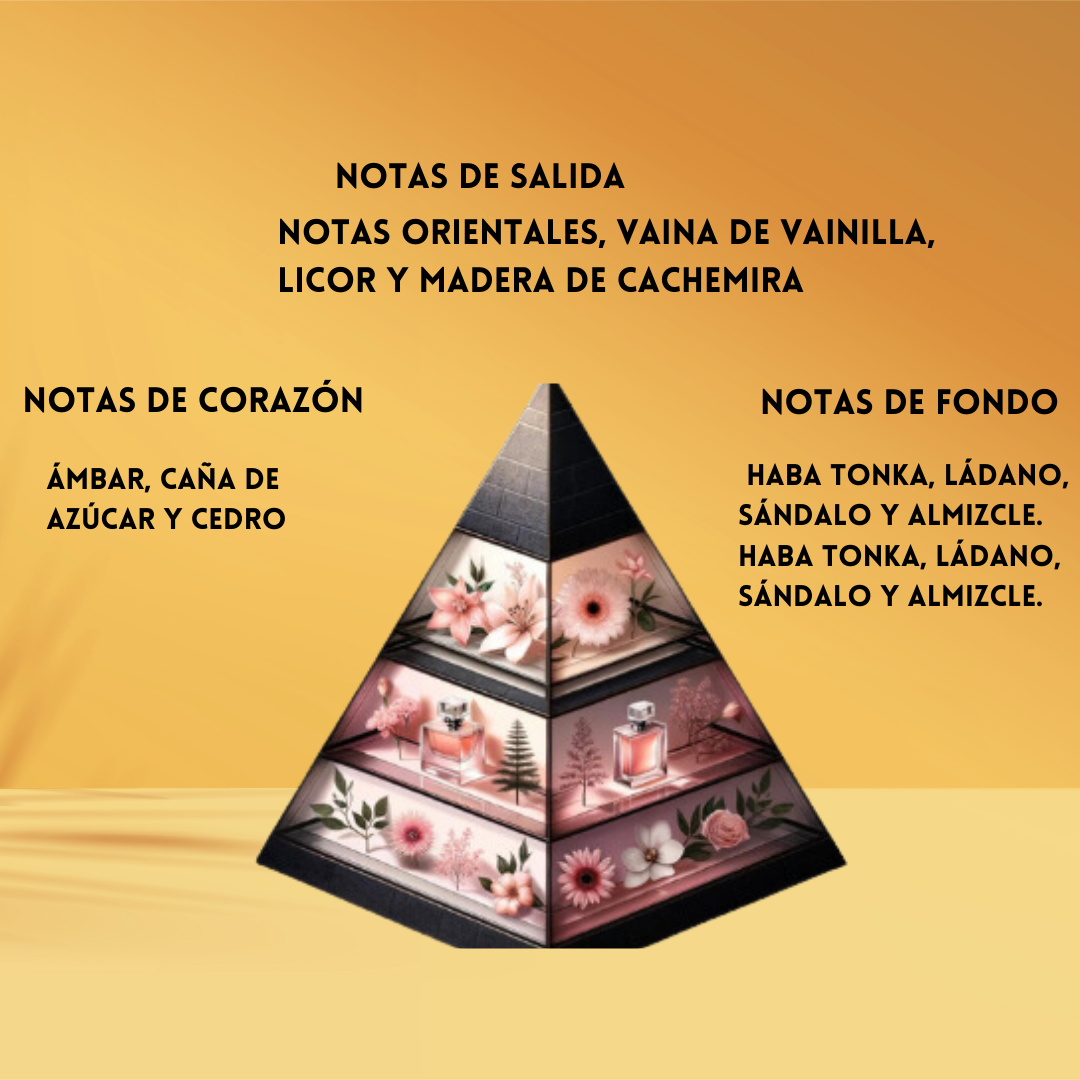 🔥 Salida intensa & lujosa: Notas Orientales, Vaina de Vainilla, Licor refinado y Madera de Cachemira.