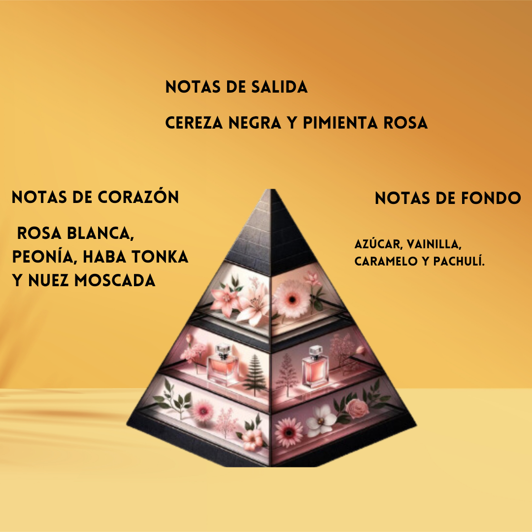🍒 Salida dulce & vibrante: Cereza Negra jugosa y un toque de Pimienta Rosa aportan energía y seducción.