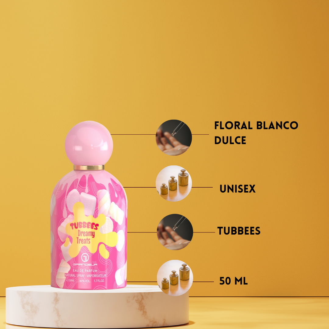 Dreamy Treats de Tubbees Eau de Parfum Unisex 50 ml (2025) es una fragancia oriental de vainilla que combina dulzura gourmand con un carácter sofisticado y envolvente. Su apertura revela la suavidad cremosa del coco, el frescor floral del lirio de los valles, el toque jugoso del melocotón y la calidez del sándalo. En el corazón, un acorde de flores blancas, arroz y caramelo aporta un contraste entre lo delicado y lo goloso, creando una experiencia olfativa adictiva. Finalmente, el fondo se asienta en una base cálida de leche cremosa, almizcle, sándalo y la profundidad de la haba tonka, ofreciendo sensualidad y persistencia. Dreamy Treats es una fragancia unisex pensada para quienes buscan un perfume gourmand sofisticado y memorable, perfecto para ocasiones especiales y noches inolvidables.
