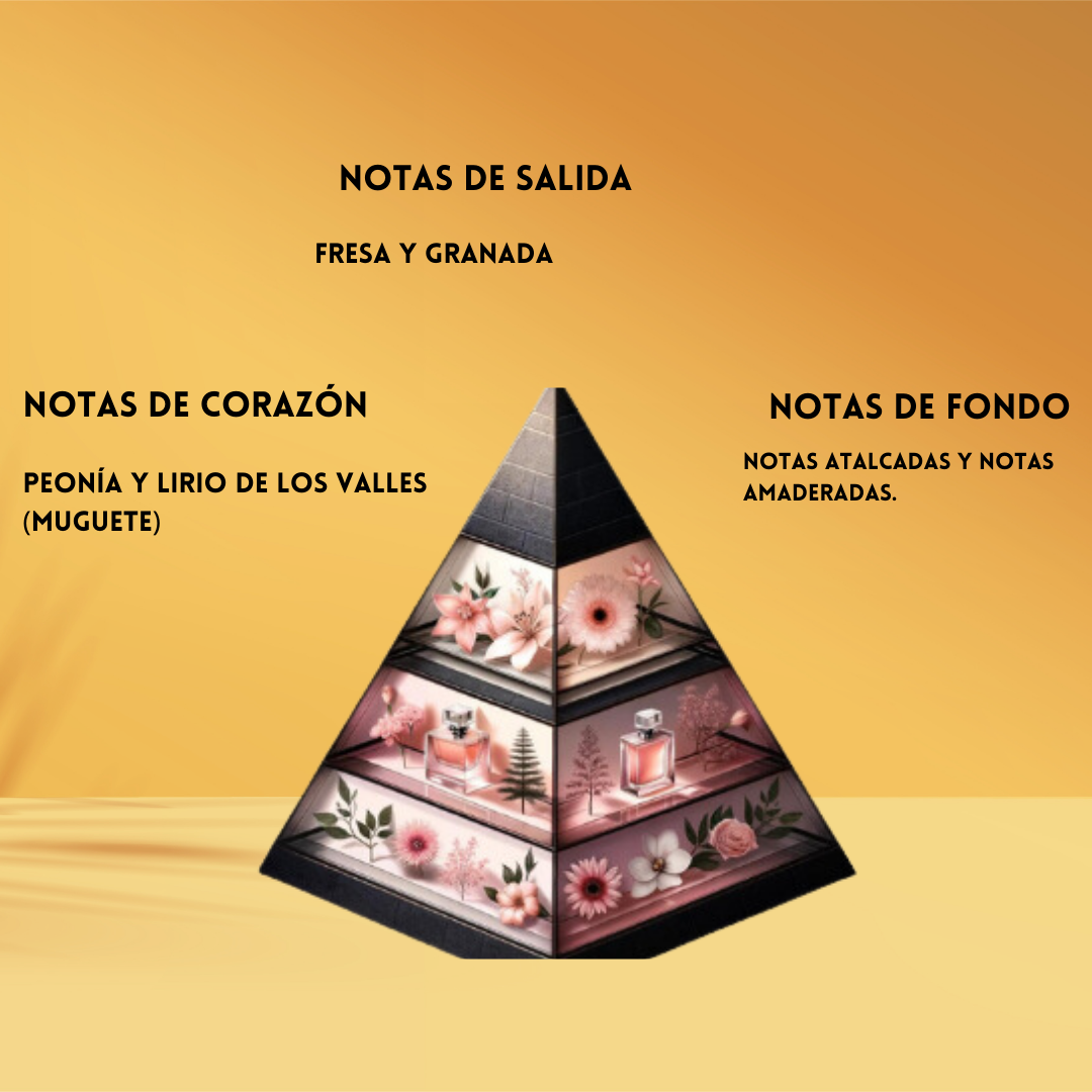 🌺 Notas de Salida: Fresa y Granada para una apertura dulce y afrutada.
