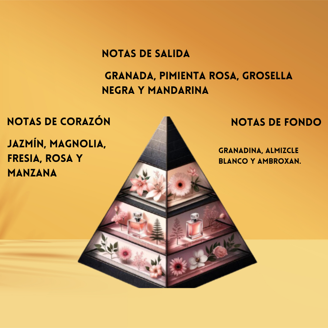 Notas de Salida: Granada, pimienta rosa, grosella negra, mandarina