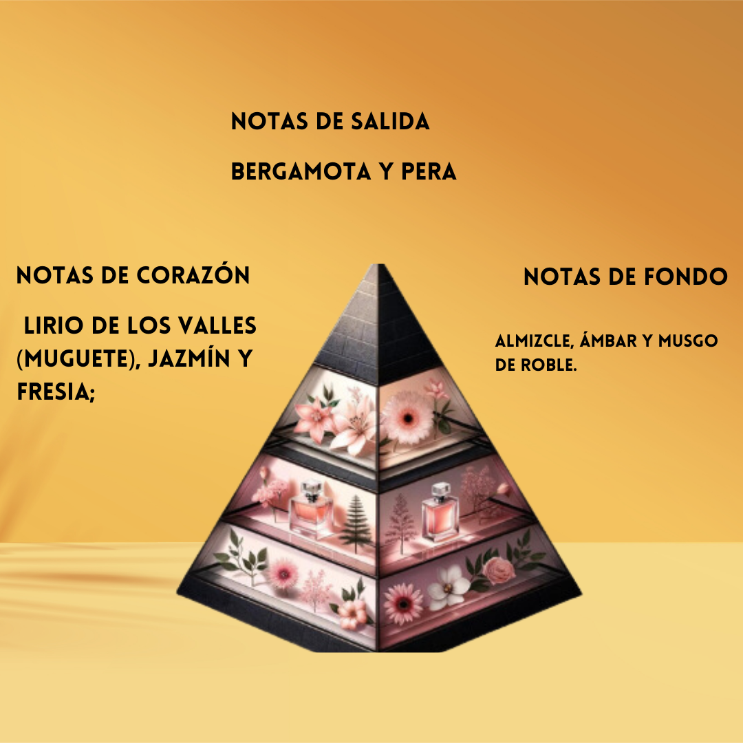 🍐 Salida fresca & luminosa: Bergamota chispeante y Pera jugosa crean un inicio vibrante y femenino.
