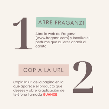 Abre la web de Fraganzi (www.fraganzi.com) y localiza el perfume que quieras añadir al carrito. Copia esa URL de la página que aparece en el prodcuto que desees y abre la aplicación de teléfono llamada Guanxe