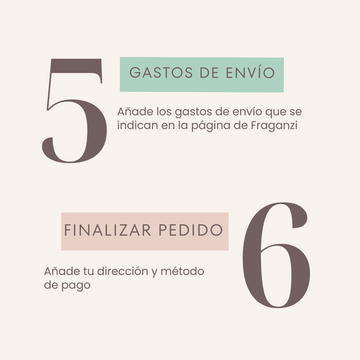 Añade los gastos de envío que se indican en la página de Fraganzi, tu dirección y método de pago.