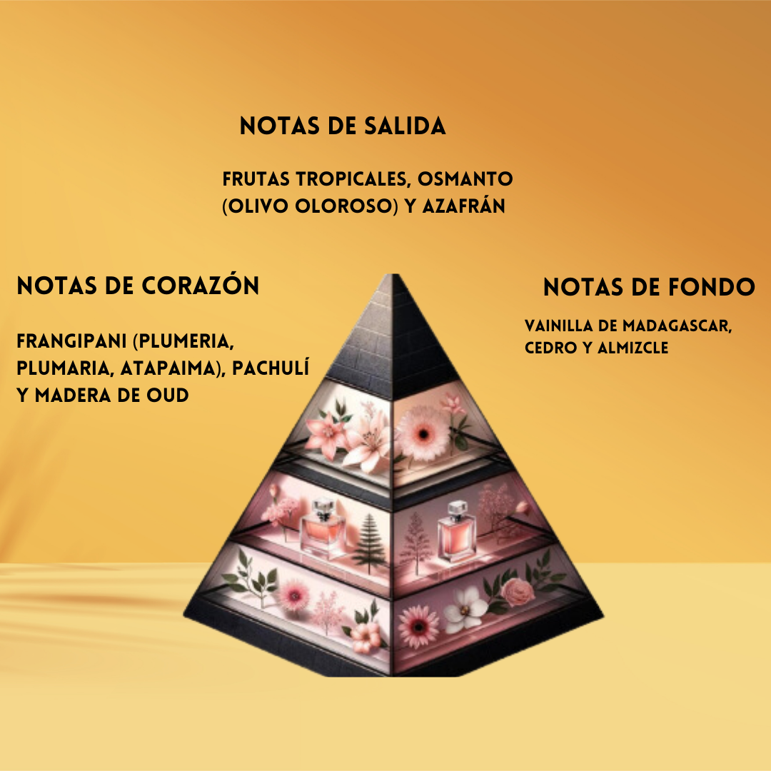 Notas de Salida: Azafrán, frutas tropicales, osmanto.