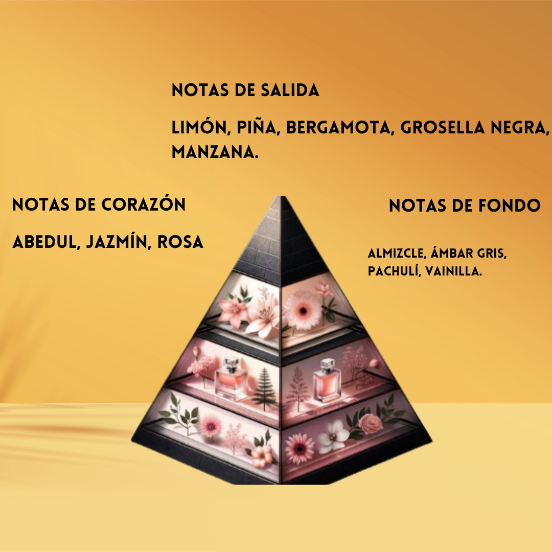 🍋 Salida frutal & chispeante: Limón, Piña, Bergamota, Grosella Negra y Manzana fresca aportan vitalidad y frescura.