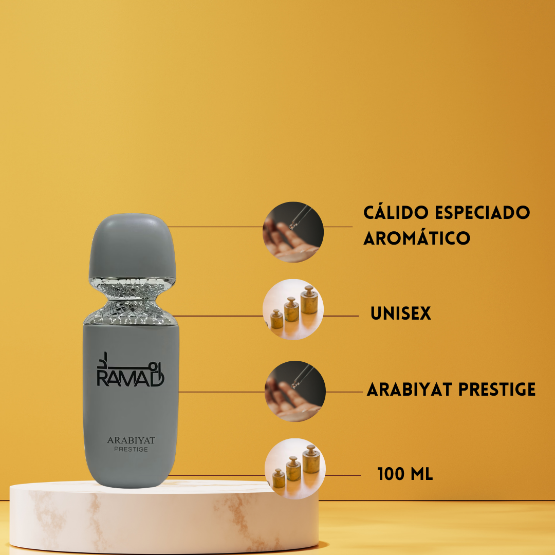 Ramad de Arabiyat Prestige Eau de Parfum Unisex (2025) es una fragancia aromática especiada diseñada para quienes buscan frescura vibrante y profundidad cálida en un mismo perfume. Creada por el perfumista Mustafa Firoz, esta composición abre con una combinación energizante de cardamomo, naranja amarga, limón y menta, ofreciendo una salida fresca, chispeante y especiada. En el corazón, la fragancia evoluciona hacia una dimensión más cálida y elegante con lavanda, canela, nuez moscada y esclarea, aportando equilibrio entre lo aromático y lo especiado. El fondo se asienta sobre una base sofisticada de cedro, tabaco, ámbar y haba tonka, dejando una estela envolvente, masculina-unisex y de excelente duración. Ramad es ideal para quienes desean un perfume versátil, refinado y con carácter, perfecto para noches frescas o eventos especiales.