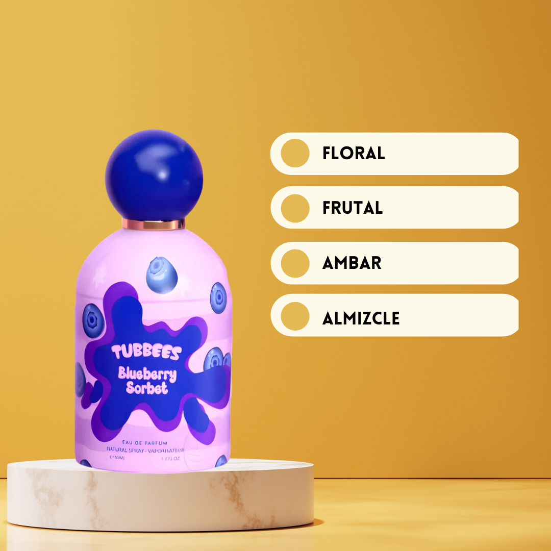 Grandeur Tubbees Blueberry Sorbet Eau de Parfum Unisex 50 ml es una fragancia que celebra la frescura frutal con un toque elegante y reconfortante. Creada por la prestigiosa casa Grandeur en los Emiratos Árabes Unidos, esta composición se abre con una explosión revitalizante de arándanos, limón y naranja, ofreciendo una salida luminosa, jugosa y refrescante. En el corazón, el perfume revela un carácter más dulce y romántico gracias a la cereza, la rosa y la flor de cerezo, que aportan suavidad floral y una sensación alegre y sofisticada. El fondo se asienta con una mezcla cálida de almizcle, ámbar y madera de cedro, dejando una estela limpia, confortable y elegante. Blueberry Sorbet es una fragancia unisex moderna y versátil, perfecta para cualquier temporada, ideal tanto para el uso diario como para momentos especiales.