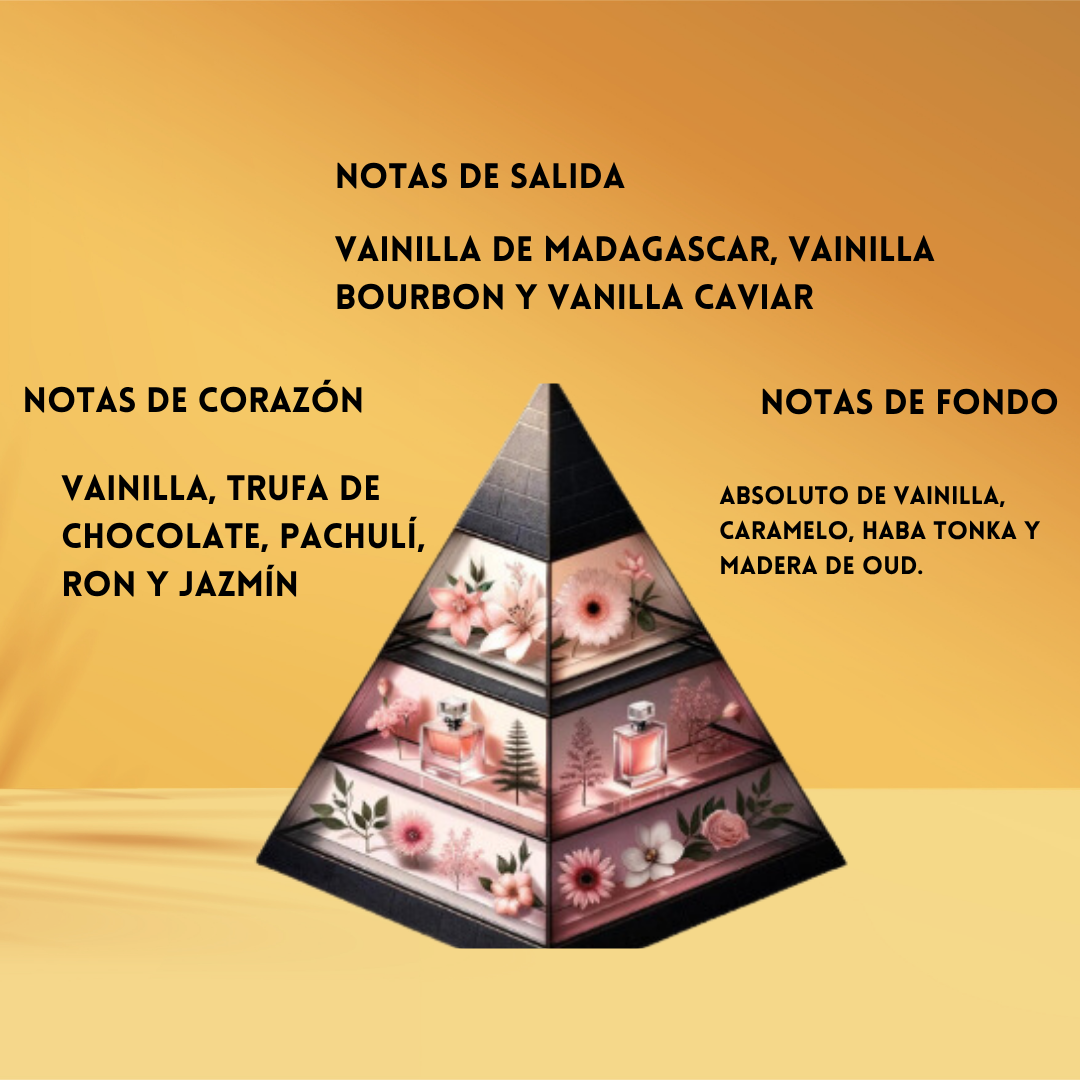 • Notas de Salida: Vainilla de Madagascar, Vainilla Bourbon, Caviar de vainilla